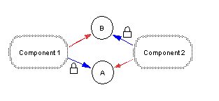Deadlock Deadlock occurs when two or more threads create recursive lock dependencies and wait indefinitely for each other to release the locks held. Figure 1-2 illustrates a deadlock scenario. Component 1 has locked object A while component 2 holds locks on object B. Now component 1 waits for B to be released while component 2 waits for A to be released.