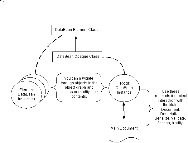 Root DataBeans expose additional methods for interacting with the main document they represent. This main document is an instance of a document that conforms to a schema and has a given root. All Root DataBeans extend class DataBeanOpaque, which itself extends class DataBeanElement.